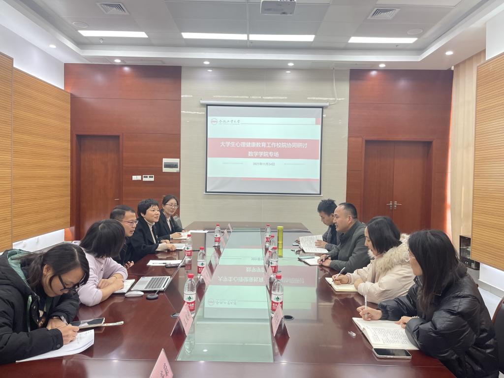 11月24日下午,南宫体育2021年心理育人工作校院协同研讨会在翡翠湖校区科教楼A座第三会议室举行。党委学生工作部心理健康教育与咨询中心、学院相关领导和老师参加了会议。学院党委书记范仁庆代表学院向心理健康教育与咨询中心各位领导老师表示欢迎,数学学...