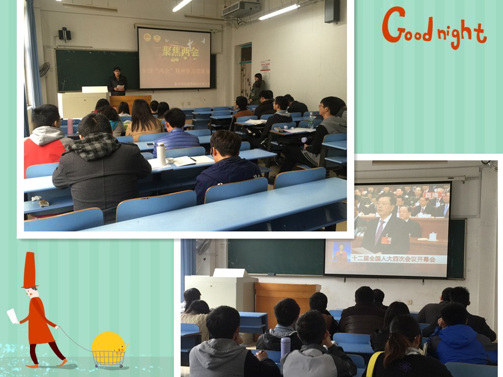 3月5日上午9:00,南宫体育翡翠湖校区党支部全体党员、入党积极分子在翡翠湖校区六教101,通过互联网观看了十二届全国人大四次会议开幕式直播,仔细聆听了国务院总理李克强同志所作的政府工作报告。 开幕式四项议程全...