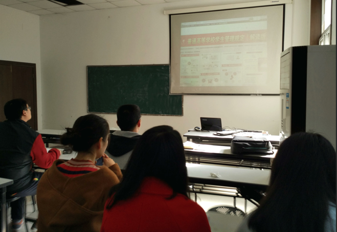 3月20日上午,南宫体育2015级研究生计算数学班在南宫体育楼105召开了《普通高等学校学生管理规定》学习交流会。 会上,所有同学一起观看了习近平同志关于高校思想政治工作的讲话的新闻,了解思想政治工作在教育教学过...