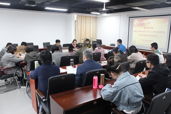 为认真学习贯彻党的十九大精神,11月21晚,2017级研究生应用数学党支部于翡翠湖校区科教楼A座1710室举办了党的十九大精神学习会,2017级研究生应用数学班全体成员参加学习,学习会由党支部宣传委员伍婷婷主持。 会议...