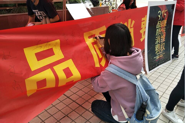 为了迎接3.15国际消费者权益日的到来,提高广大同学们的维权意识。南宫体育“品质消费 理性维权”国际消费者权益日主题活动活动于3月15日中午在翡翠湖校区一食堂广场举行。 活动主要由维权问卷调研、维权小游戏和我维...