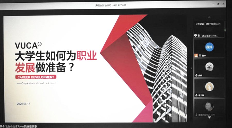 6月17日晚,南宫体育“校企面对面”就业指导报告会在腾讯会议平台成功举行,学院近300名学生参加了本场报告会,Yeahmobi易点天下网络科技有限公司的学习发展高级专家詹慧鹏应邀为同学们做了题为“VUCA时代,大学生如何为职业发展做准备?”的就业指导报告。