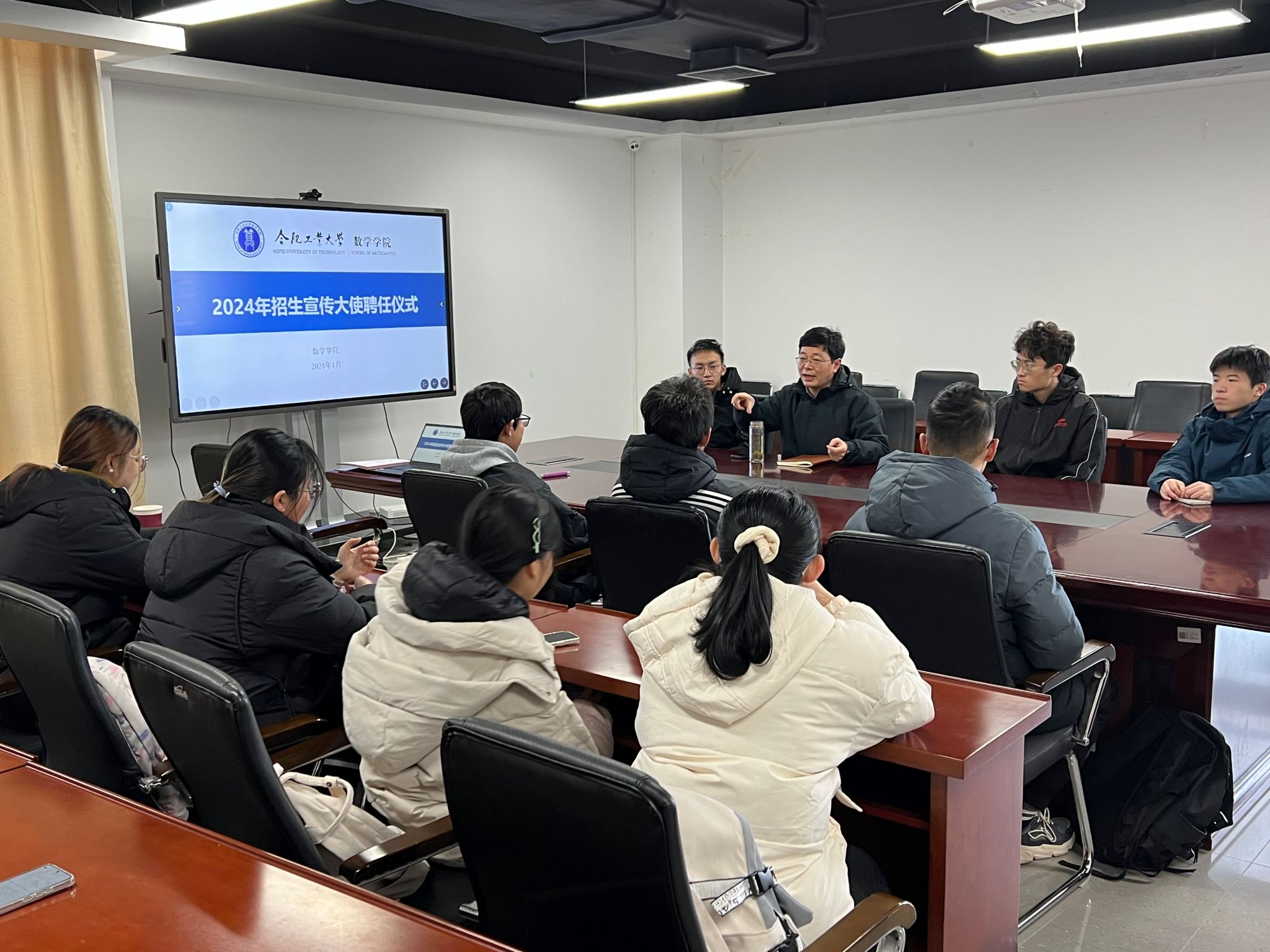 1月23日上午,南宫体育在翡翠湖校区科教楼B座1710室开展了2024年招生宣传大使聘任仪式暨招生宣传工作布置会。南宫体育党委副书记兼纪委书记彭帮国、相关年级辅导员和新聘任的24名招生宣传大使参加了此次活动。