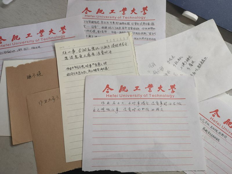 活动采用匿名分享的方法,降低了情绪分享的压力,通过互相鼓励的方式,为各位同学解答疑惑,送以安慰。同学们反馈来到大学后,学习习惯改变,学习压力增大,需要计划好大学的各个阶段;部分同学匿名倾诉了自己的情感困惑;更有同学希望通过本次活动寻找一位能够共同学习、共同进步的“学友”。活动通过写下烦恼,纾解负面情绪,释放压力,得到同学们的广泛好评。