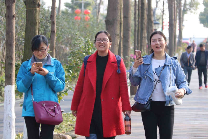 3月8日下午,南宫体育女教工们乘坐一辆大巴车,大家喜气洋洋,奔赴滨湖湿地公园。阳春三月,柳绿梅红,草长莺飞。到达之后先拍一张集体照,穿红着绿,精神百倍。随后进入公园林荫大道,那里空气清新,温度适宜,人心舒畅。