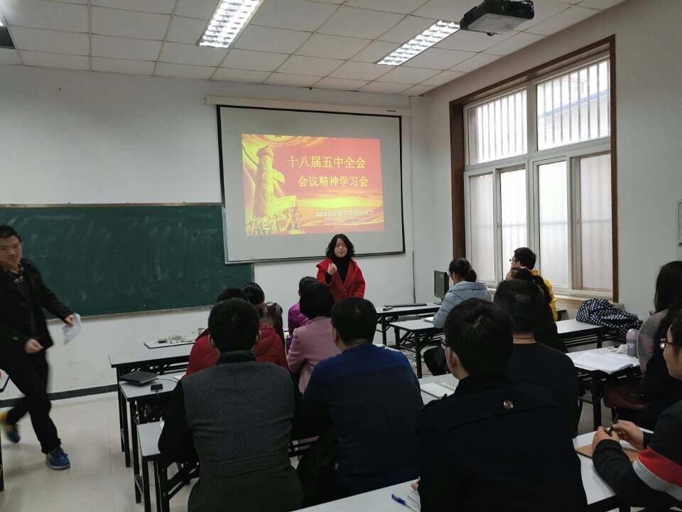 2015年12月9日上午,为深入学习贯彻党的十八届五中全会精神,南宫体育研究生辅导员王晓莉老师在数学学科楼105教室,举行学习十八届五中全会的2015级研究生主题班会。