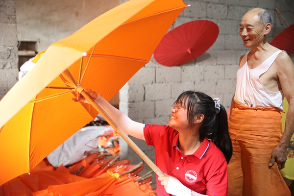 “星火皖南”三下乡暑期社会实践团队队长李洪同学表示:“油布伞是中华民族的重要文化遗产,是泾县的明珠,作为泾县走出的大学生,我一定会认真学习,努力宣传,扩大非物质文化遗产在青年群体中的影响力。”在郑国民厂长和王延松老师傅的指导下,同学们在厂房中认真学习制伞,亲手练习削竹、套伞衣等传统工艺。