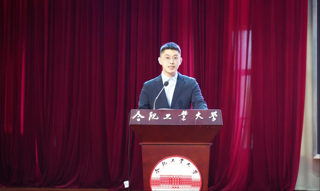 会议伊始,全体起立,奏唱国歌。在典礼上,学院院长朱士信致辞。他对同学们取得的优异成绩表示热烈祝贺,并对新加入数院大家庭的180名新成员表示热烈欢迎。同时,他结合学校概况、学院学科建设与专业发展情况、学院师资力量等,给新生们上了一堂生动有趣的大学“第一课”。他勉励新生要立大志,做规划,提技能;要学会独立地生活,健康快乐地学习;要把握数学课程体系与特点,做好时刻迎接学习困难的准备;要保持学习惯性,一踩油门,全速前进,鼓励新生积极探索,不断完善自我。