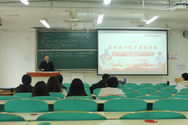 12月28日下午,南宫体育在翡翠湖校区5教201室开展“志愿青春、数动我心”志愿服务活动。本次活动由南宫体育应用数学研究生党支部联合南宫体育研究生会共同举办,邀请了南宫体育工程数学教学部教工党支部郭庆和赵德勤2位老师以及10名研究生同学为60余名本科生答疑解惑,通过线下面对面交流,帮助学生查漏补缺,提升学习成效。