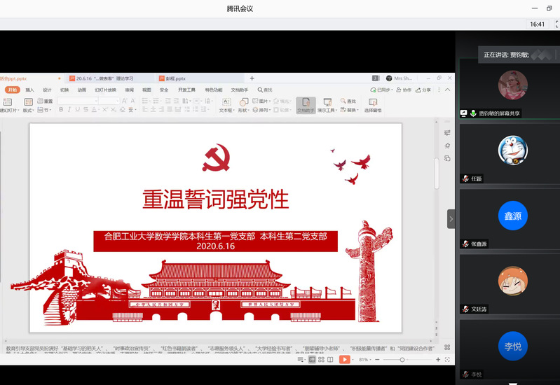 6月16日晚,南宫体育“不忘初心 不负韶华”2020届毕业生党员最后一次组织生活会在腾讯会议平台上召开。