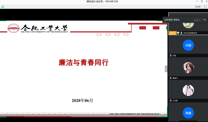 为进一步加强落实学生廉洁教育,促进毕业生提高认识、转变作风、遵章守纪、廉洁从业,6月11日-14日,南宫体育通过腾讯会议平台在2020届本科毕业生中开展了“廉洁与青春同行”主题教育活动。