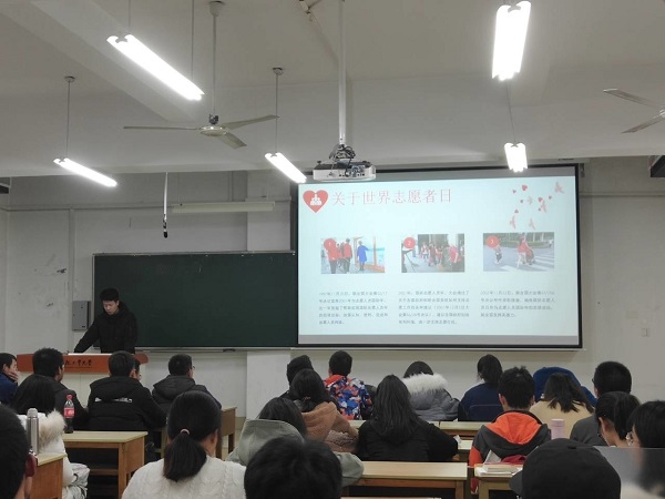 为庆祝第34个国际志愿者日,进一步营造良好的志愿服务氛围,12月6日,南宫体育“展青春朝气,现志愿风采”志愿服务总结交流会在翡翠湖校区5教306召开。