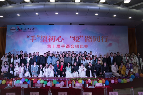 为弘扬“团结聚力,众志成城”的抗‘疫’精神,传播手语文化,传递人间温情,合肥工业大学第十届“‘手’望初心,‘疫’路同行”手语合唱比赛决赛于12月20日在翡翠湖校区综合楼301举行。比赛邀请了安徽建筑大学心理学副教授、安徽省高校心理健康教育教学工作委员会副主任委员、安徽省政府心理应急救援总队特聘专家郑敏,合肥特殊教育中心政教处副主任、听障部副部长邓大柱,安徽农业大学心理中心主任孙蕾,校党委学生工作部副部长崔健,校心理健康教育与咨询中心主任李志明担任评委,部分学院的相关负责同志、辅导员老师担任嘉宾,比赛吸引了学校300余名同学参加。