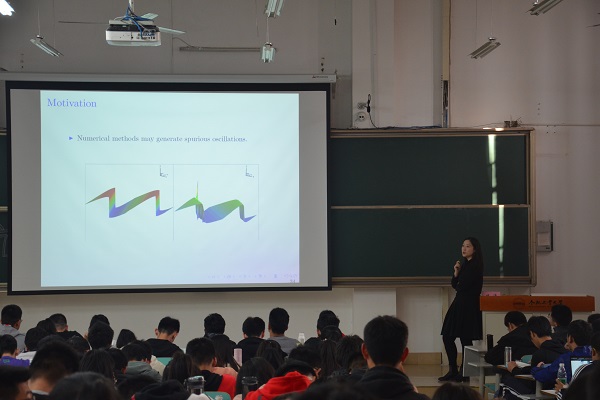 报告会上,杜洁以《计算流体力学及相关数值算法畅谈》为题,结合自身科研经历,介绍了计算流体力学的相关知识,讲述了数学公式背后的故事,使同学们切实感受到数学在实际生活中的应用。