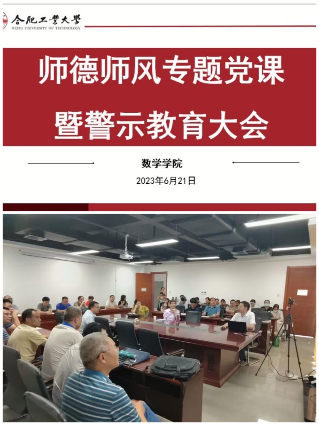 为了持续推进主题教育,扎实开展师德师风建设,6月21日下午,在翡翠科教楼1710会议室,南宫体育党委理论学习中心组组织召开师德师风专题党课暨警示教育大会。学院全体教师参加会议。